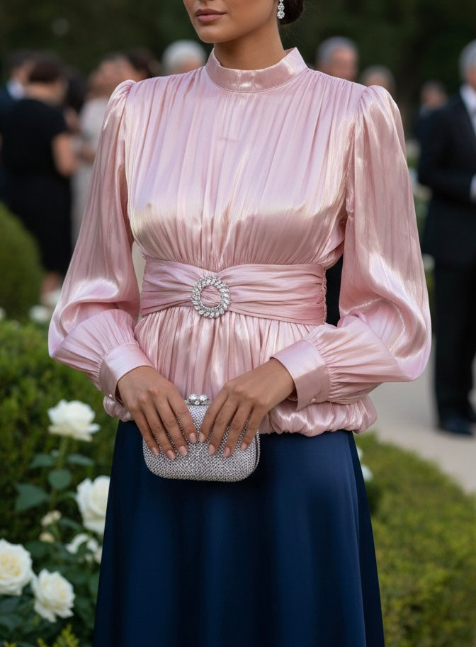 Esta blusa es una pieza sofisticada y llamativa, ideal para eventos especiales donde quieras destacar por tu elegancia.