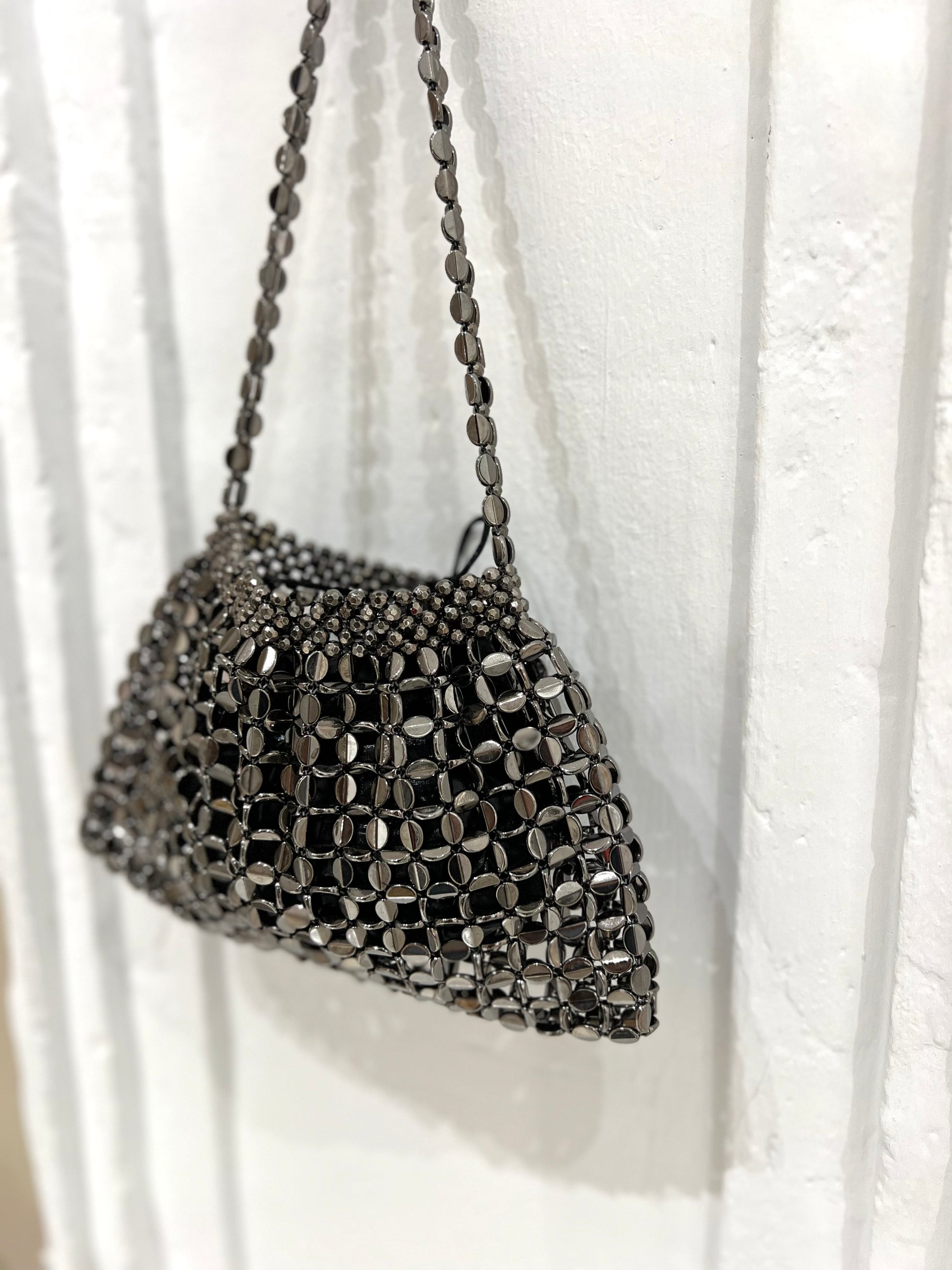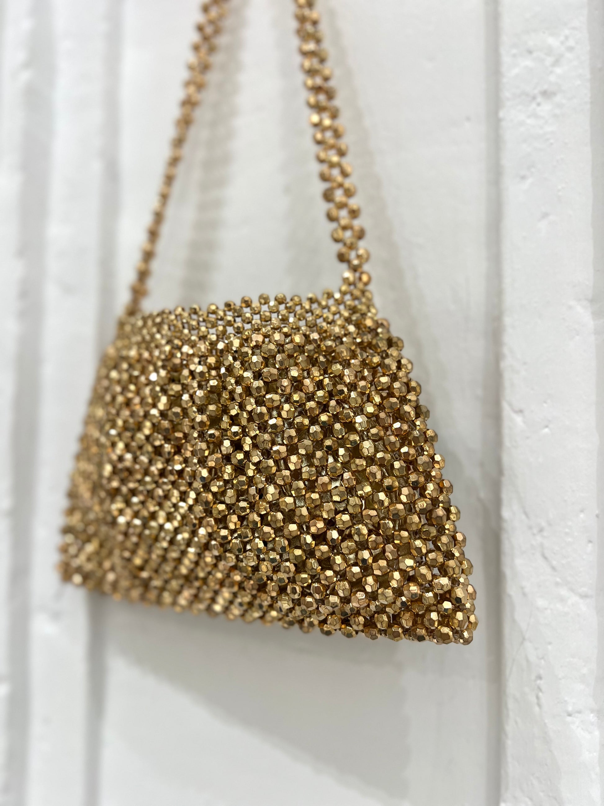 Su tamaño es perfecto para llevar lo esencial (móvil, llaves, labial…) y su asa de abalorios aporta un extra de estilo y originalidad.