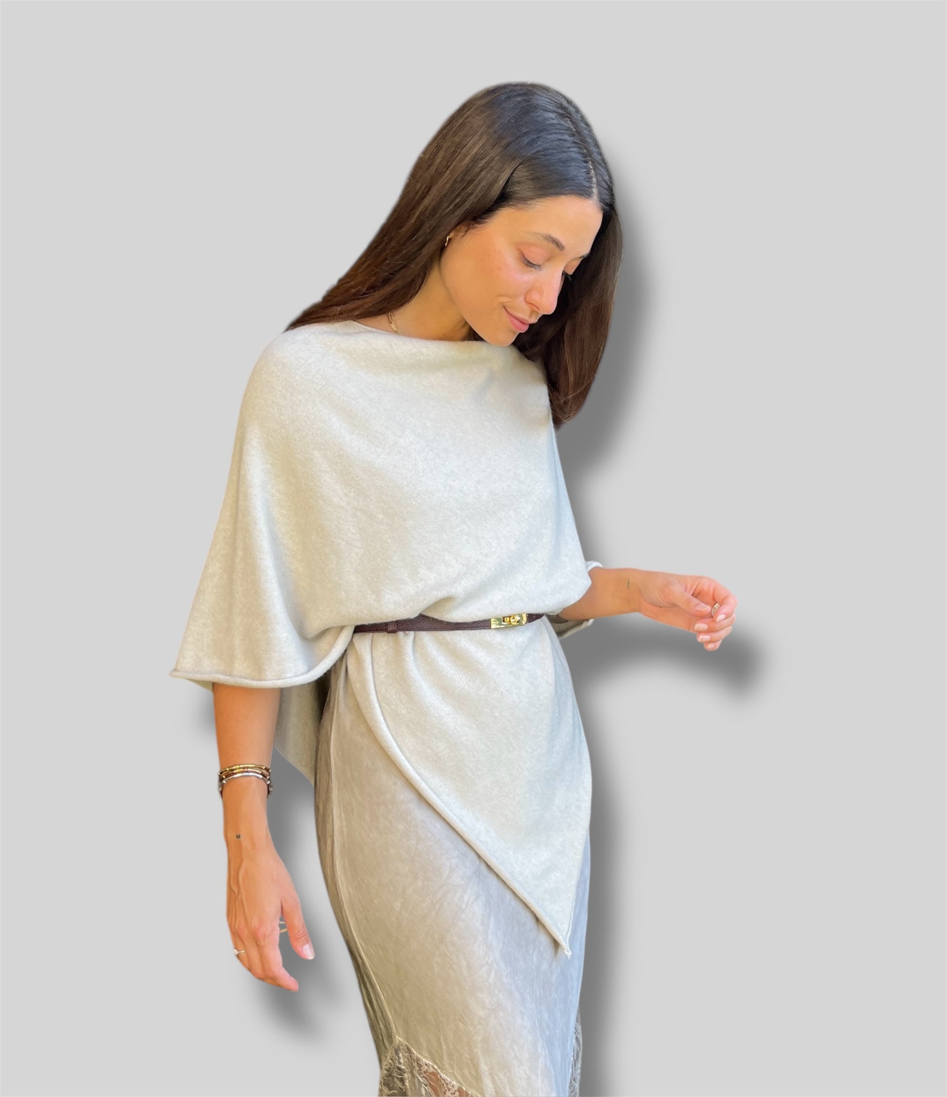 Elegante, versátil y cómoda — esta capa de punto es la prenda ideal para completar cualquier look de otoño e invierno. Su diseño fluido con caída en pico frontal aporta un toque sofisticado y favorecedor, perfecto tanto para el día a día como para ocasiones especiales.